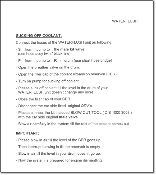 | Refill, Flush and Remove coolant | Waterflush unit with pump, 30L drum and hose assembley | |||
